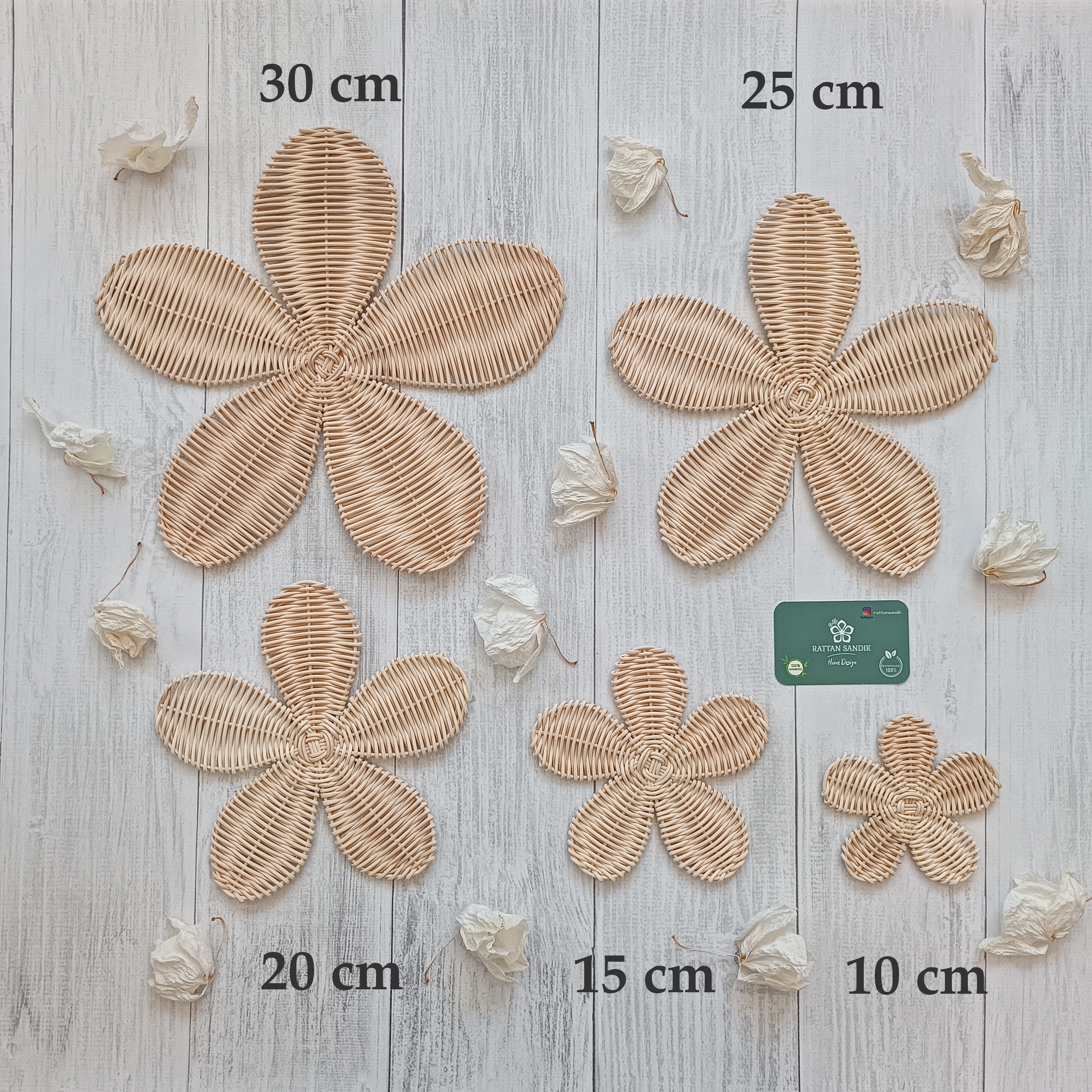 Evinize doğal ve sıcak bir hava katmak için el işçiliğiyle hazırlanan rattan duvar çiçeği mükemmel bir dekorasyon ürünüdür. Tamamen doğal rattan malzemeden üretilen bu çiçek formundaki duvar süsleri, yaşam alanınıza boho, rustik ve modern bir dokunuş katar.